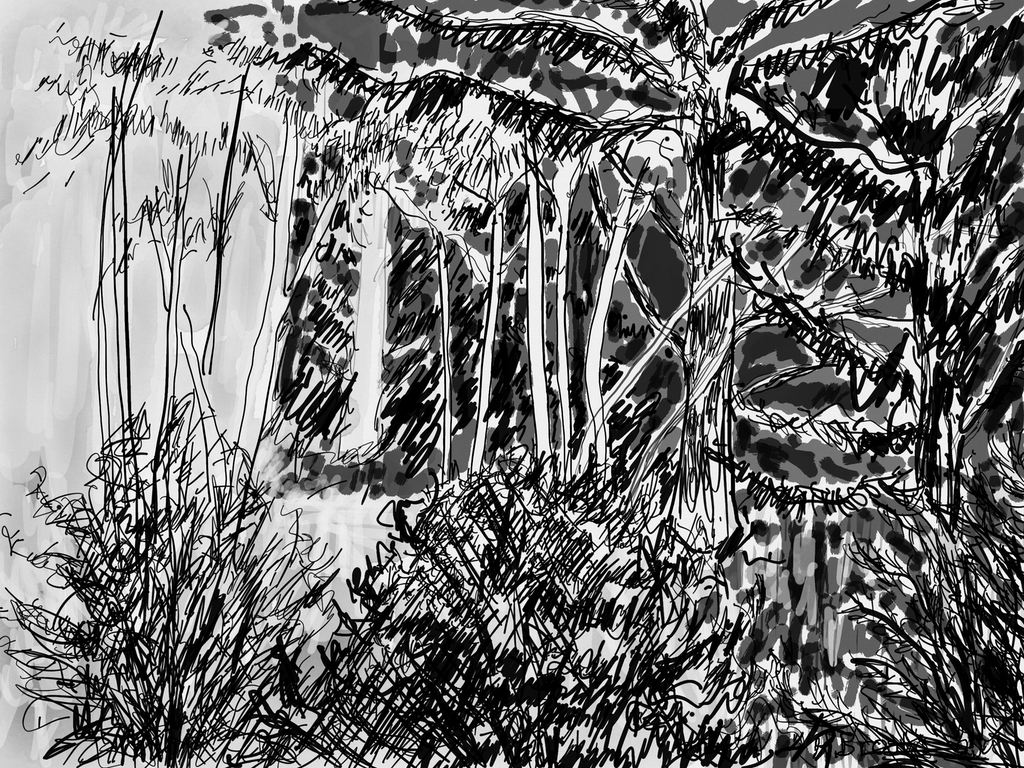 "Palm Desert, Olive Tree, #121 digital" brush & sepia ink 14" x 17"