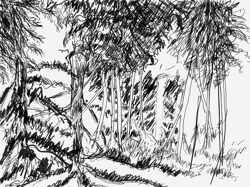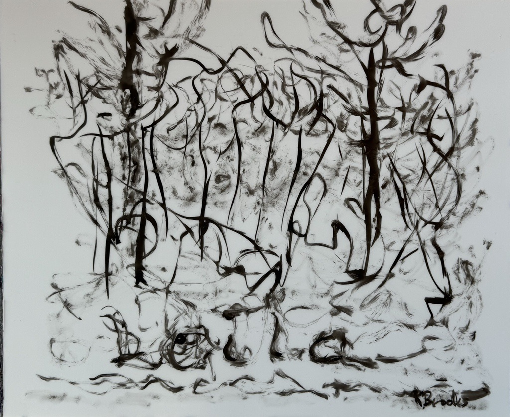 "Palm Desert, Olive Tree, #122 digital" brush & sepia ink 14" x 17"