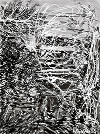 "Palm Desert, Olive Tree BW, #121BW" digital re-work of brush & sepia ink 14" x 17"