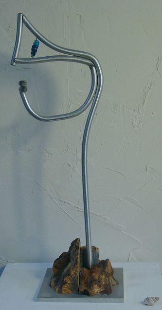 Applewood, aluminum and acrylic paint