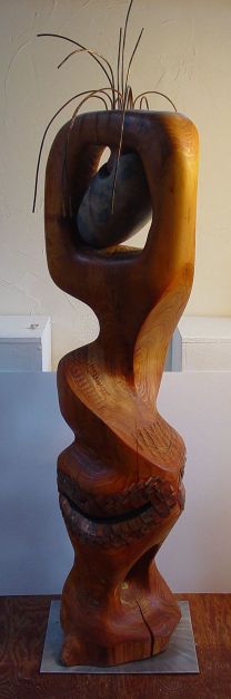 Cedarwood, unknown stone, copper, acrylic paint