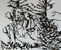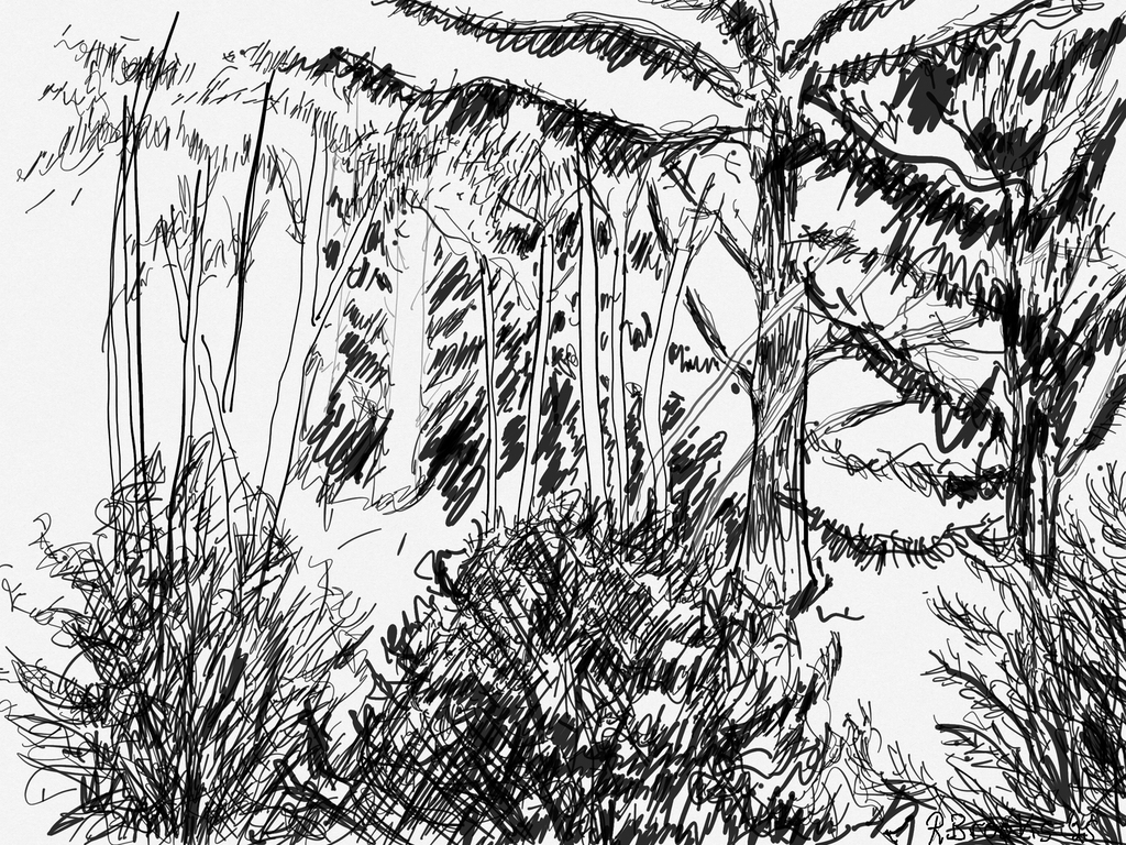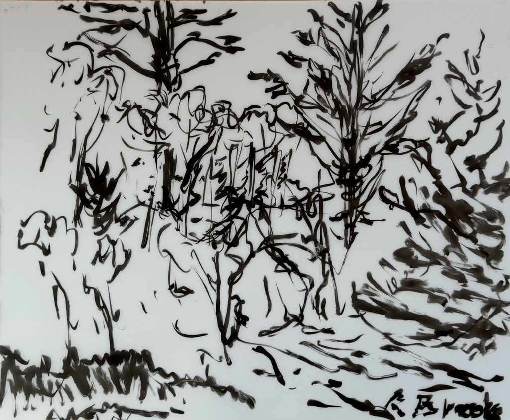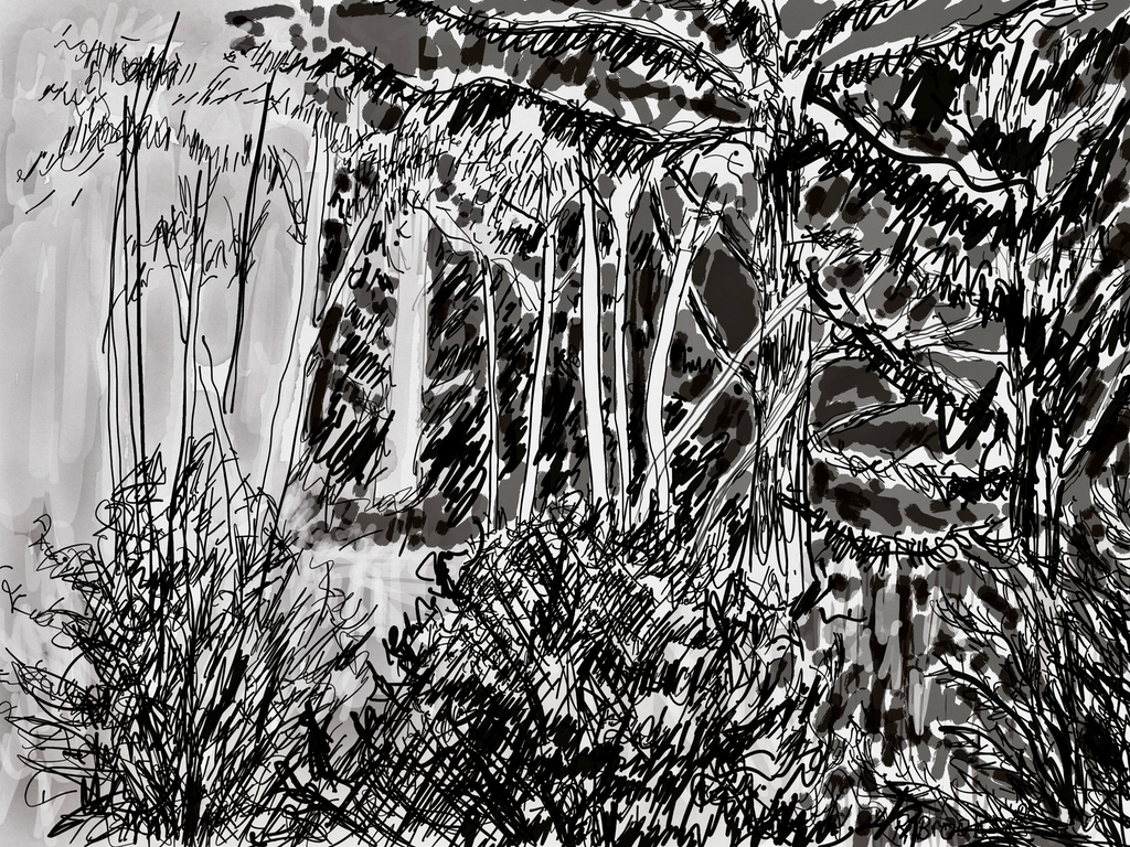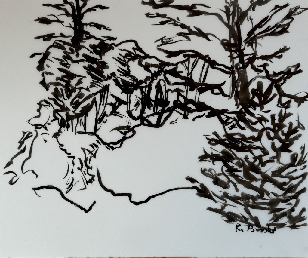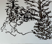 "Palm Desert, Olive Tree, #122 digital" brush & sepia ink 14" x 17"