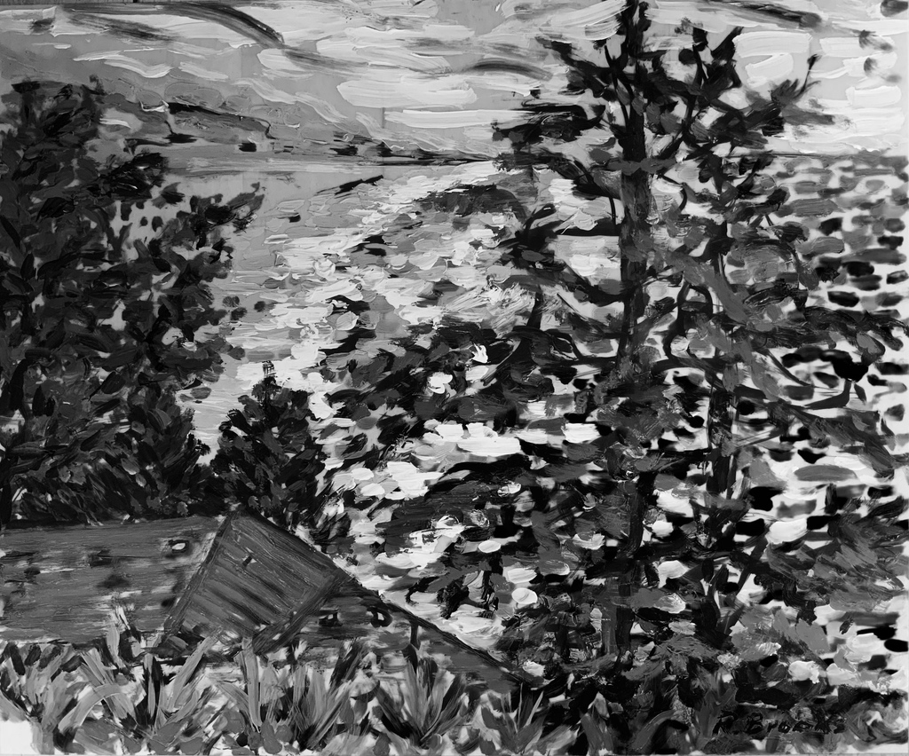 "Palm Desert, Olive Tree BW, #120BW" digital re-work of brush & sepia ink 14" x 17"