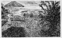 "Fresno, Lemon Tree, #1 BW" digital re-work of brush & sepia ink 14" x 17"