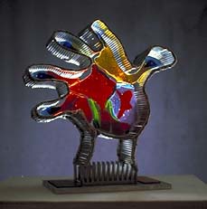 aluminum, wood, scratch board, silk, acrylic paint